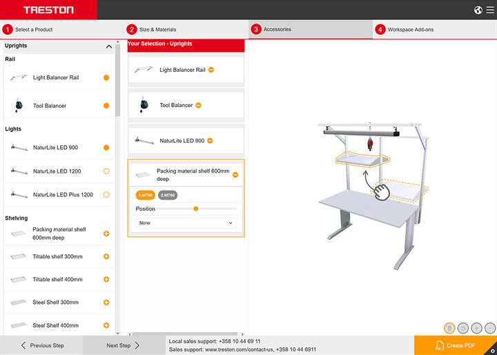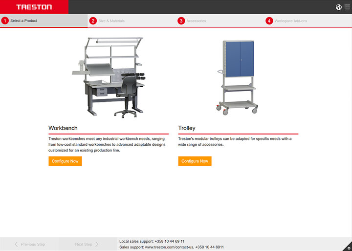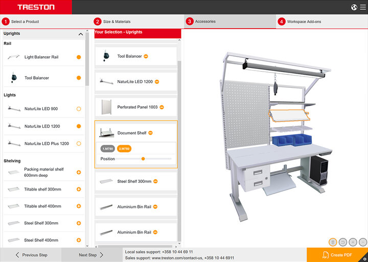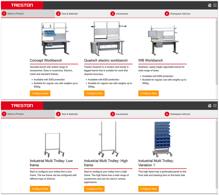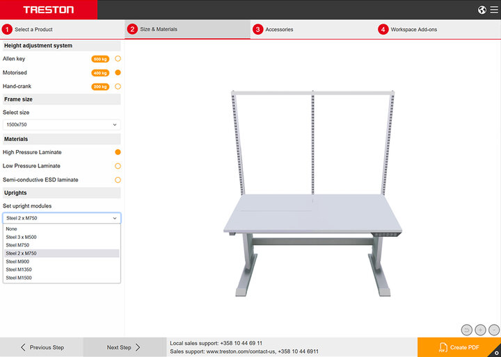 Trestons 3D-konfigurator kan användas för att designa en arbetsstation som bäst uppfyller dina behov. För att komma igång behöver du bara en mobiltelefon eller en dator med webbläsare; Ingen nedladdning krävs och det är gratis att använda programvaran.